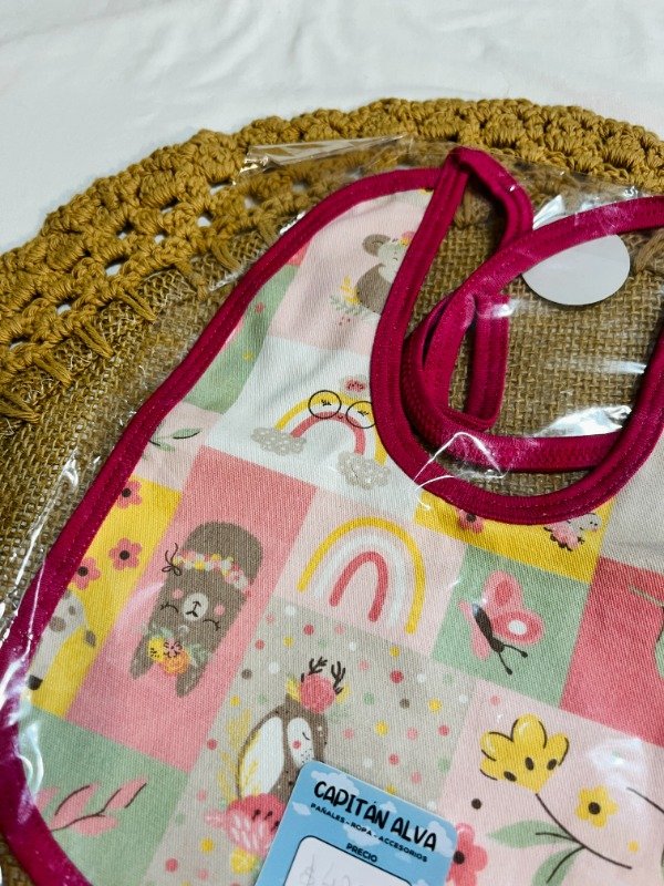 Babero con tela impermeable - arcoiris y mariposas