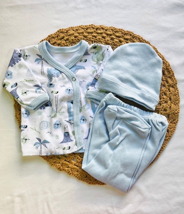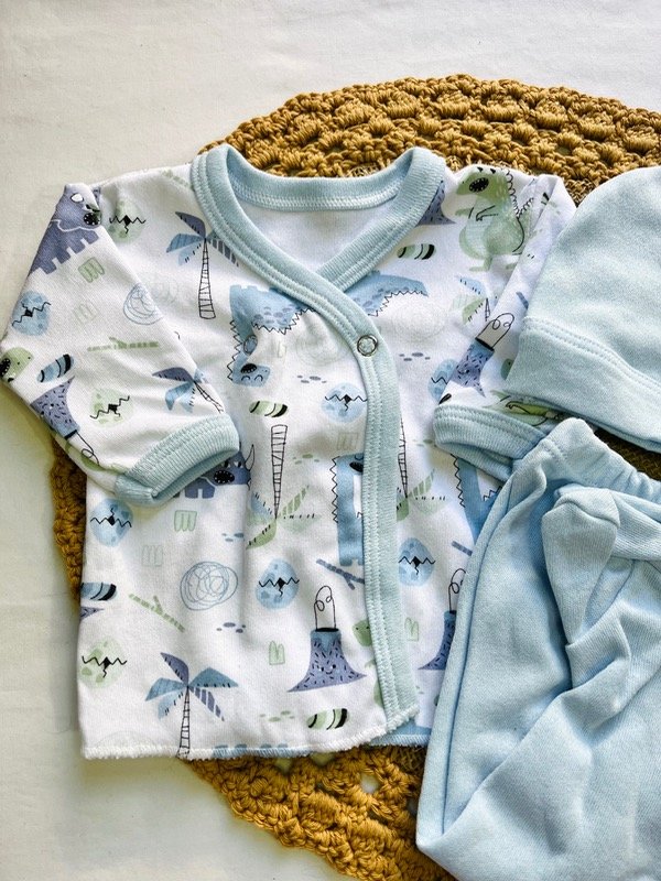 Ajuar 3 piezas - dinosaurios - blanco