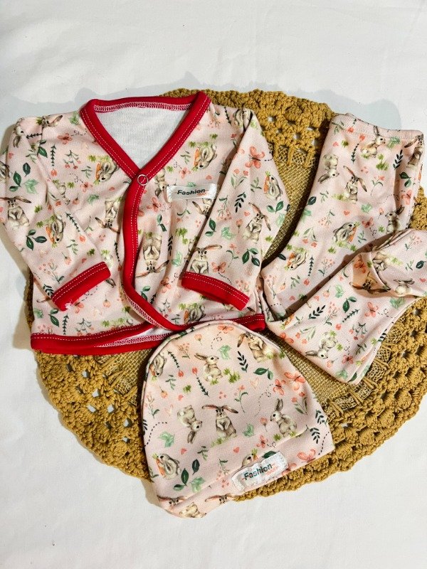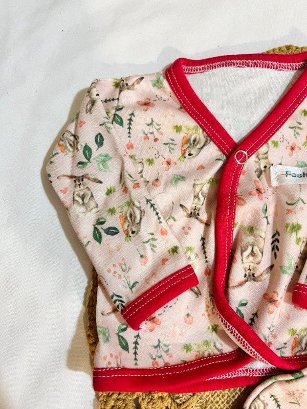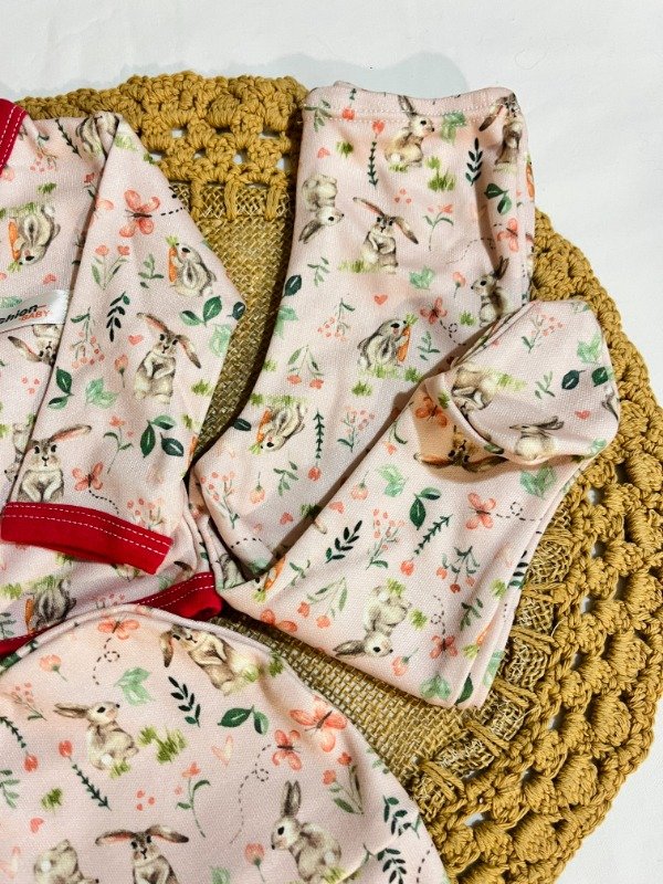 Ajuar largo 3 piezas - Conejitos Fucsia