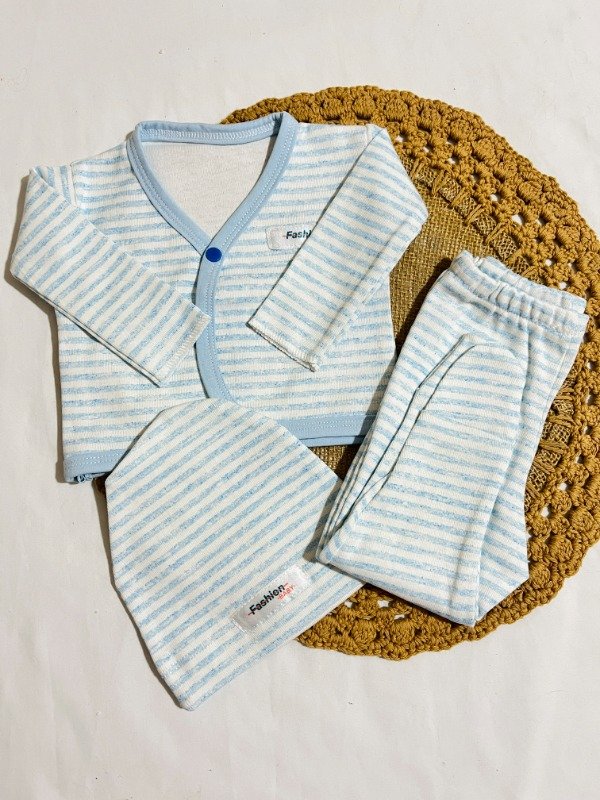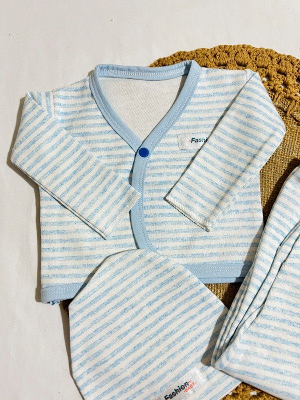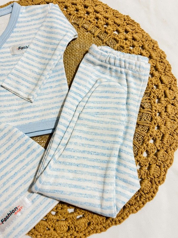 Ajuar largo 3 piezas - rayado celeste